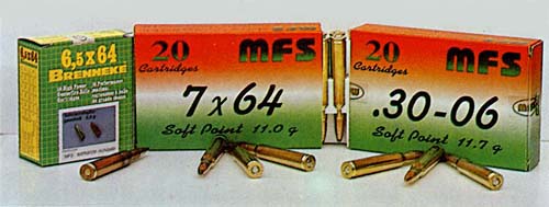 A .30-06 és a 7x64 mm-e lõszerek általános felhasználású változatai vadászati és sportcélra egyaránt alkalmasak. Jó expanzivitás, jó találati pontosság gyõzi meg a felhasználót a töltények kiváló tulajdonságairól. A 6,5x64 mm-es kaliber specialitását egyre többen ismerik el. Ez a töltény SPP-6,5g-os Hornady lövedékkel kerül szerelésre. Legkisebb csomagolási egység 20 db-os litografált papírdoboz, 600 db-os kartondoboz.